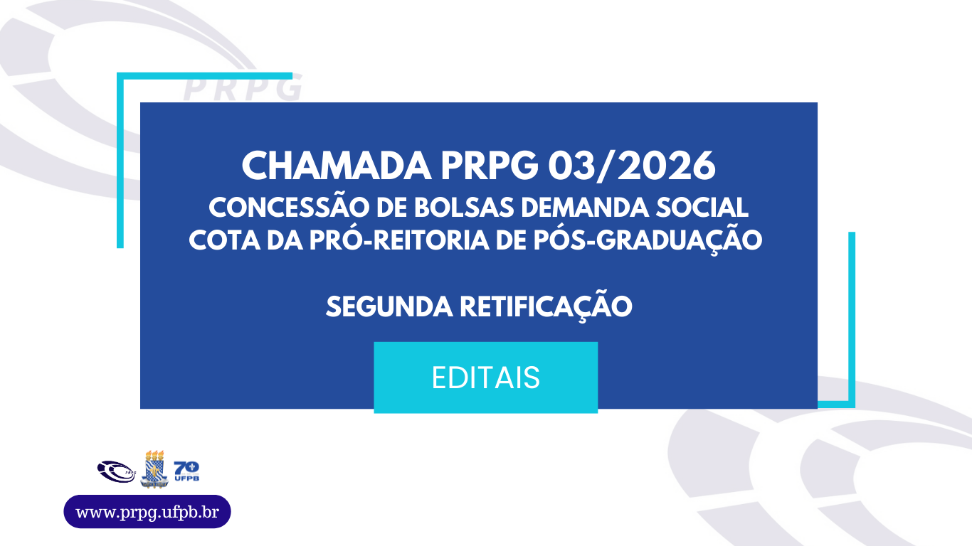 A Pró-Reitoria de Pós-Graduação da Universidade Federal da Paraíba (PRPG/UFPB) torna pública a Segunda Retificação […]